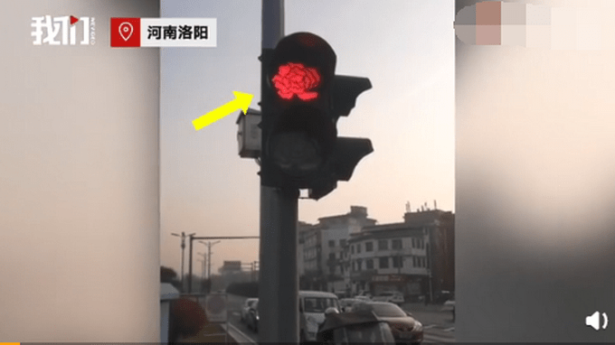 洛阳部分红绿灯变成牡丹形状 红牡丹停,绿牡丹行