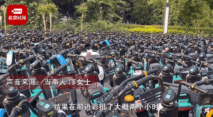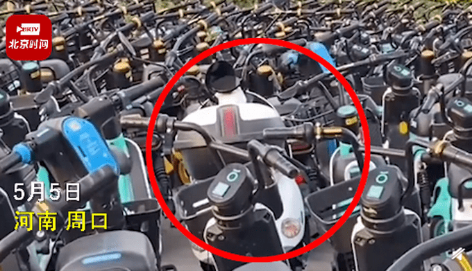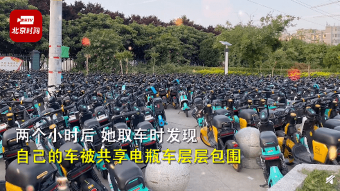 5日周口,一女生的私人电动车被共享电瓶车包围。当事人邝同学表示,本想着一会就出来,就把电动车停在了共享单车区域内。当时周围没车,结果2小时后,车子已被层层包围。在朋友帮助下,搬了20多分钟才挪出来。
