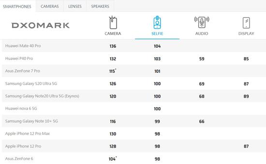 昨日DxoMark 公布了苹果 iPhone 12 Pro Max 的自拍评测结果:前置摄像头性能与 12 Pro 相同,最终得分 98 分,目前并列第 8 名。