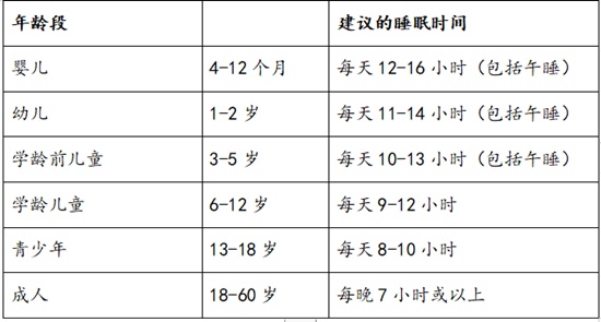 随着年龄的增长,每个人需要的睡眠时间也会发生变化。美国睡眠医学会和中国睡眠研究会建议: