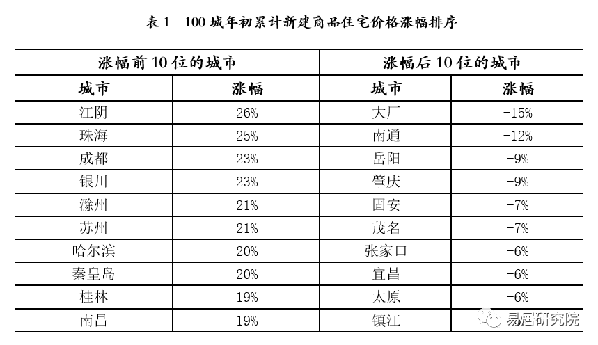 最近,易居房地产研究院发布最新一期《全国百城房价报告》,这份报告的样本城市是100个,我们总共有360个地级市,差不多是三分之一,还是可以当做全国房价走势的一个参考。