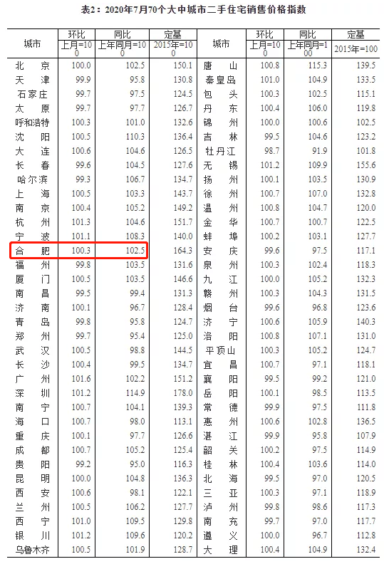 二手房方面,根据国家统计局发布的7月70个大中城市二手住宅价格变动情况,合肥二手房销售价格环比上涨0.3%,同比上涨2.5%。