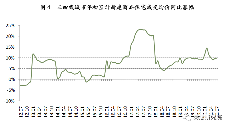 1-7月份,64个三四线城市新建商品住宅成交均价为12103元/平方米,同比上涨10.0%。虽然三四线城市的去库存压力相对大,但是房价并没有明显下跌,甚至涨幅还大于一二线城市。