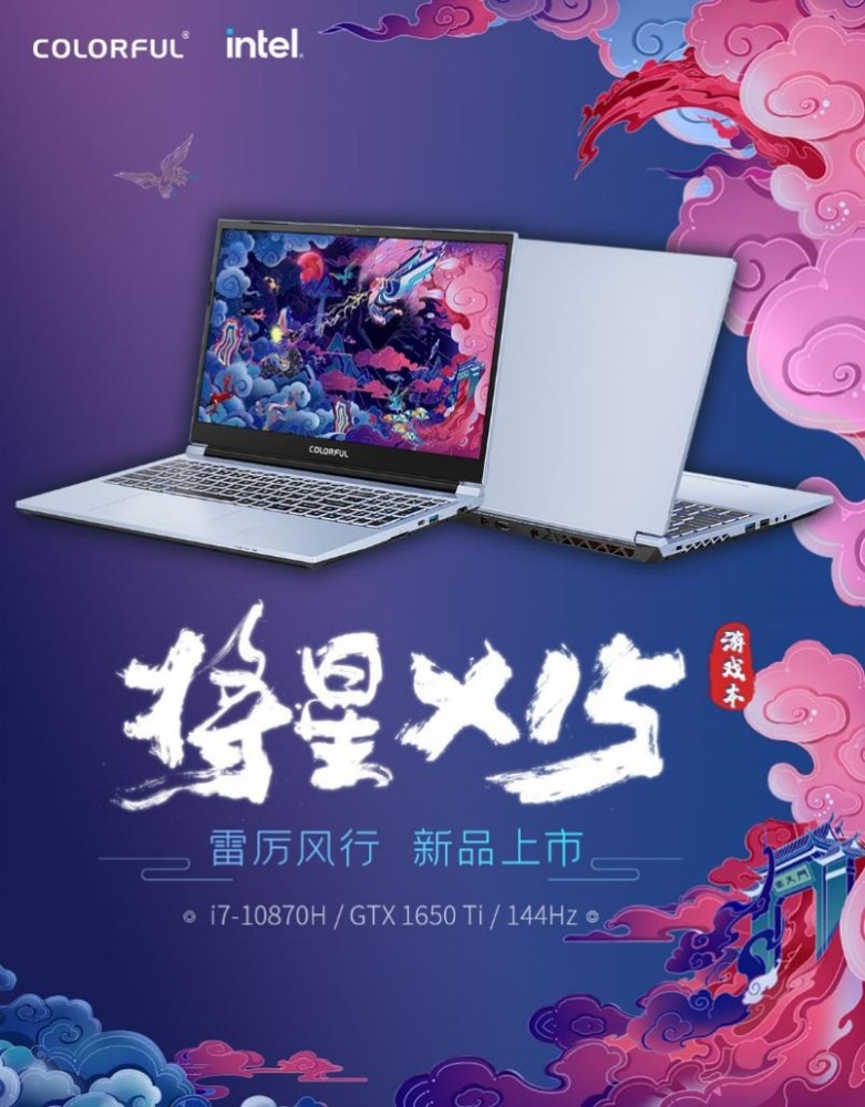 七彩虹将星 X15 区别于传统笔记本非黑即白的外观颜色,以 “星蓝”作为主色调,其轻薄简洁的机身,个性化的 C 面设计融入雷震子神话元素。除开笔记本,还推出了《雷震浩天》国风主题音乐和典藏版定制周边。