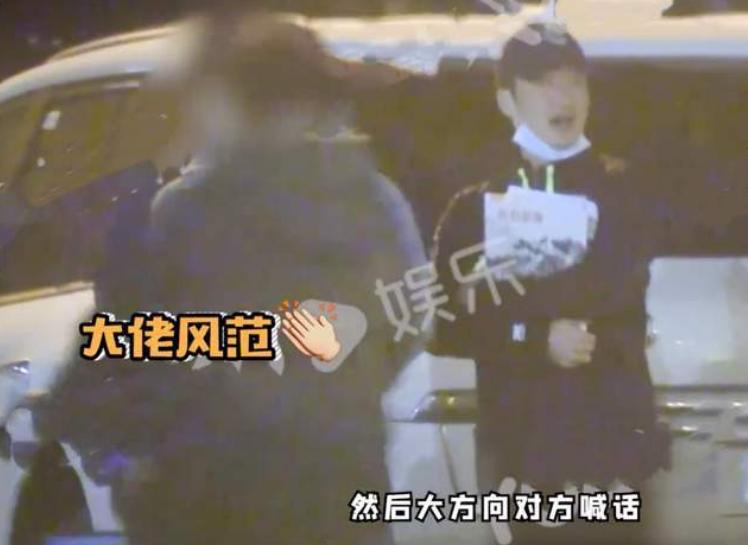 聊了一会儿后,其他好友也走了过来,吴京就拉上其他好友一块聊,这个时候吴京发现自己被跟拍了,于是吴京就对着跟拍的车辆喊话,十分的霸气。