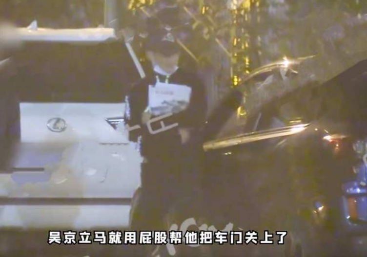 不过既然发现了,那也不能无视,吴京还是向跟拍的车辆走了过去,到了车跟前,似乎还和车内的人聊了几句,结果车内的人打开车门想要下来问候一下,结果吴京一屁股把对方车门又给关上了,画面十分滑稽搞笑。
