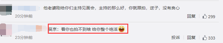 有一位网友的评论比较有意思,直接调侃吴京“股灵京怪”。看来吴京用屁股给狗仔关车门一事也是给大家带来了不少欢乐。