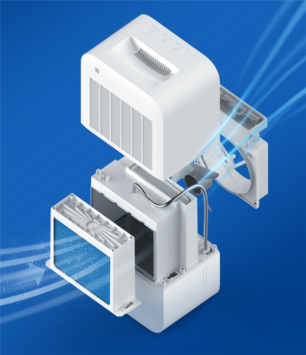 机器内部加入循环水泵结构,将水分导流至滤芯顶部从上而下喷淋,充分湿润滤芯,令水箱内水分循环流动,不易滋生细菌。