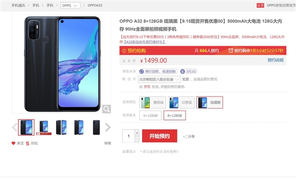 售价方面,OPPO A32 4GB+128GB版售价1199元,8GB+128GB版售价1499元。首销优惠50元,8GB+128GB版到手价为1449元。