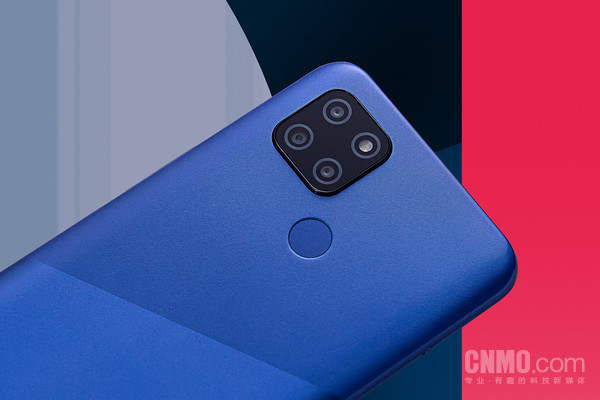 真我V3采用了后置指纹的设计,这基本也是当前百元级产品的一个标配,指纹与背部的纹理进行了巧妙地融合,并没有突兀感;背板的左上角则是设计了格外显眼的矩阵四摄,方形的设计辨识度颇高,方形内也放入了三颗镜头和一颗闪光灯,代表着这是一部后置三摄的5G手机。在中框部分,右侧是电源按键、音量键的设计,底部则是设计了Type-C的充电口、扬声器、麦克风和3.5mm耳机孔,得以保留的耳机孔想必会成为不少用户听收音机的心头好。