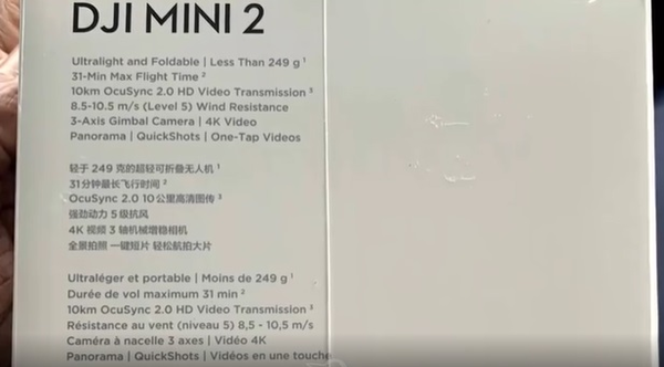 根据曝光的包装盒信息显示,Mavic Mini 2重量约为249g、最长飞行时间为31分钟,支持10公里高清图传;大疆Mavic Mini 2支持4K视频录制,以及3轴机械增稳。据悉,因为采用了更加强劲的电机,所以Mavic Mini 2在抗风能力上也有一定的提升。