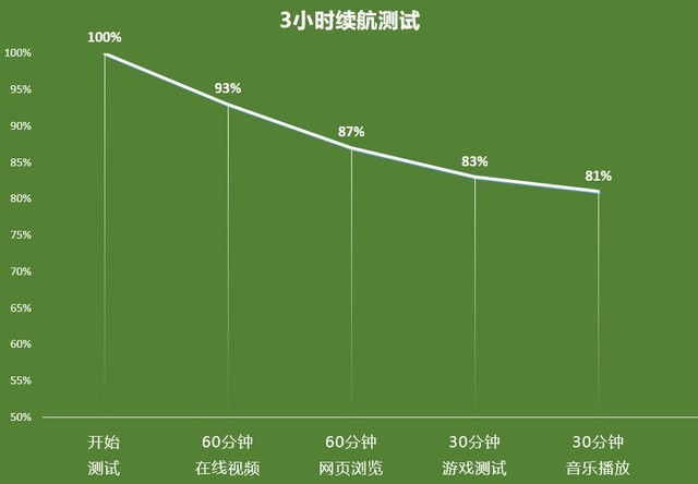 超长的续航能力和闪充功能可以说是OPPO K7x的一大亮点,OPPO K7x配备了5000mAh大电池,这一电池容量完全可以满足用户的各种日常续航需求。在实际的3小时续航测试中,先将手机电量充至100%然后在经过包含在线视频、网页浏览、游戏、音乐播放项目的3小时连续亮屏使用之后,OPPO K7x依旧剩余了81%的电量,其续航实力可以说相当优秀。