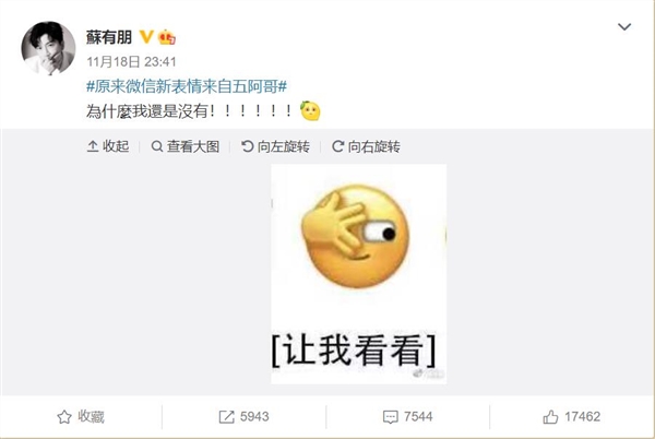 网友调侃,微信新表情包“让我看看”是还珠格格五阿哥给的灵感吗?