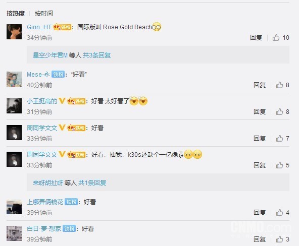 “满载一船秋色,平铺十里湖光。”公布的这款配色采用了蓝色、金色两种配色,蓝金渐变,仿佛水光山色,交相辉映。因此,该配色被命名为“湖光秋色”。这款配色究竟好不好看?看看网友的评论就知道了。Redmi红米手机官宣微博发出后不久,就有不少网友一致评论称,“好看”。可见大家对该配色颜值的认可程度。