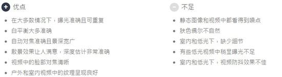 DXO 表示,该机曝光良好,准确度一致,动态范围稍宽广,色彩表现良好,但亮光下或室内的典型光线下常常会出现些许的绿色或橙色白平衡色偏,以及肤色看起来有点不自然。