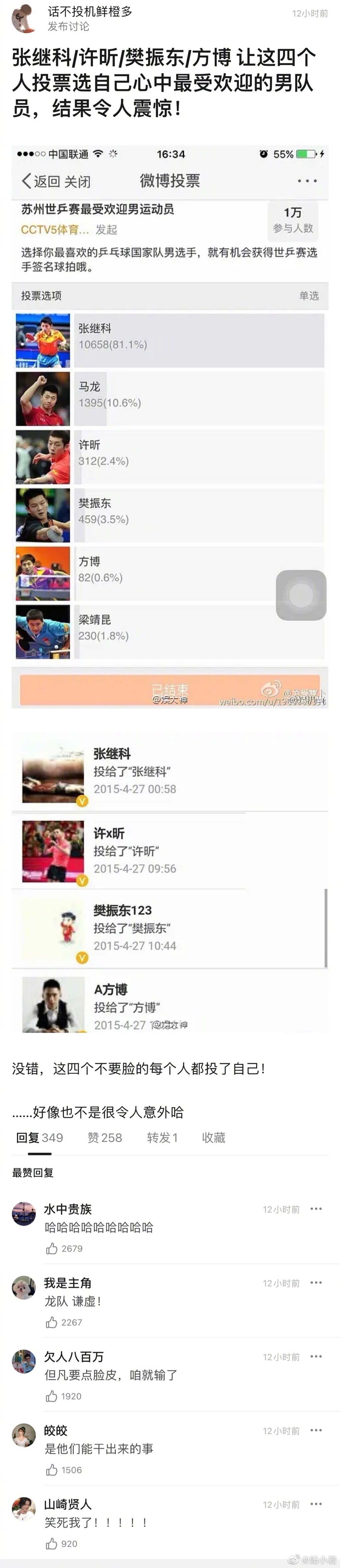 而且张继科还是最早投票的,熬夜投票哈哈哈哈