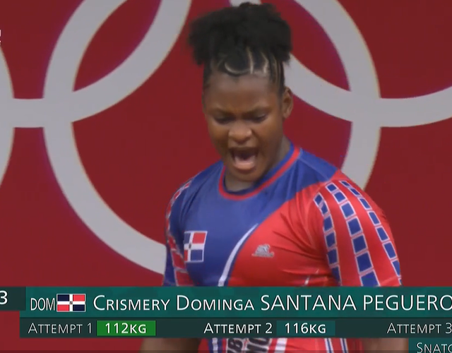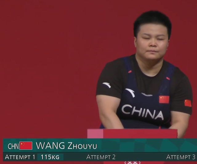 汪周雨的抓举开把重量是115公斤,排在所有参赛选手的首位。不过,汪周雨第一次试举显得有些紧张,没有准备充分就匆忙举起,最终没能成功。第二把,汪周雨依然是115公斤,这次轻松举起。汪周雨抓举最大的对手是来自多米尼加的桑塔纳,她第一把112公斤和第二把116公斤都成功举起,不过第三把119公斤失败了。
