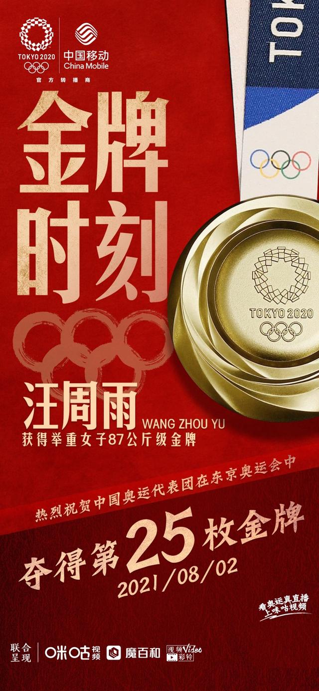 目前,2020东京奥运会的赛程已过半,日本本土疫情进一步的加重,给前去参赛的运动员们带来了极大的挑战,但中国代表团将会在接下来的各项比赛中继续努力拼搏,拿下属于我们自己的荣耀!中国移动咪咕作为东京奥运会赛事转播顶级合作伙伴,将会为观众们献上一场体育盛宴,助力中国奥运健儿勇夺金牌!