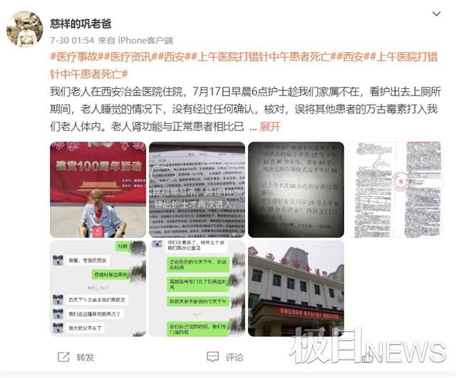近日,有西安网友在新浪微博发帖称,家里82岁的老人在西安冶金医院住院时,护士失误用错药后数个小时内,老人离世。