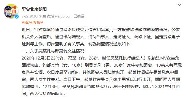 给大家画个重点,冯某以挑选MV女主角面试为由,约都美竹到吴亦凡家中参加聚会,10余人共同玩桌游并饮酒,次日凌晨至7时许,其他聚会人员陆续离开,都美竹留宿,两人发生性关系。