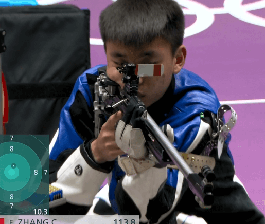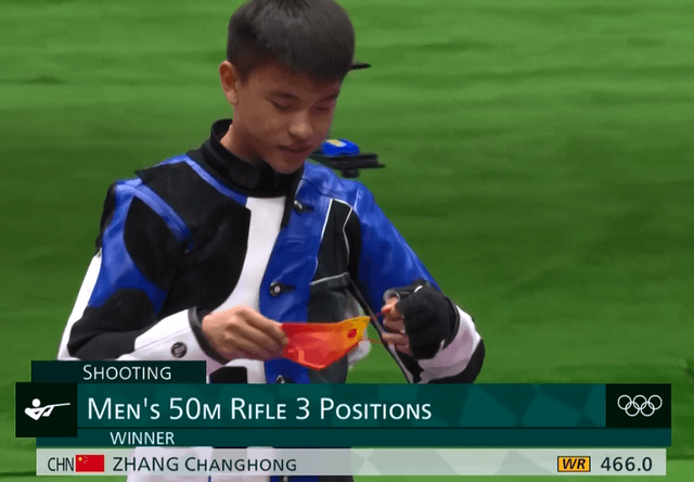 来到立姿十枪,张常鸿表现依然稳健,在淘汰轮之前依然稳居第一。淘汰轮开始,卡门斯基出现失误,张常鸿依然稳的可怕,白俄罗斯,乌克兰选手被淘汰。单枪淘汰开始,第一枪张常鸿打出10.3环继续稳固第一的位置,领先优势来到一环整,克罗地亚选手插上安全旗。第二枪,丹麦选手赫格被淘汰,卡门斯基再次失误,张常鸿领先1.8环,将至少锁定奖牌,第三枪,克罗地亚塞比奇得到铜牌,张常鸿带着1.6环的成绩来到最后一枪,只需要拿到9.3环以上的成绩即可夺金。10.3环,张常鸿拿下了射击项目的最后一枚金牌。