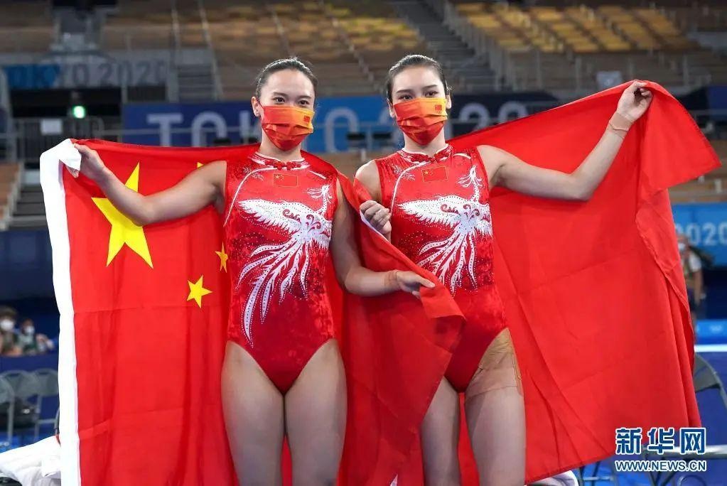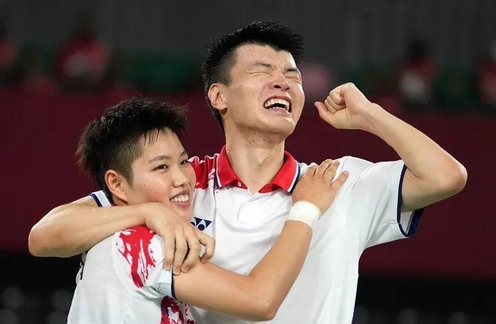 7月30日,王懿律(右)/黄东萍庆祝夺冠。新华社记者 李一博