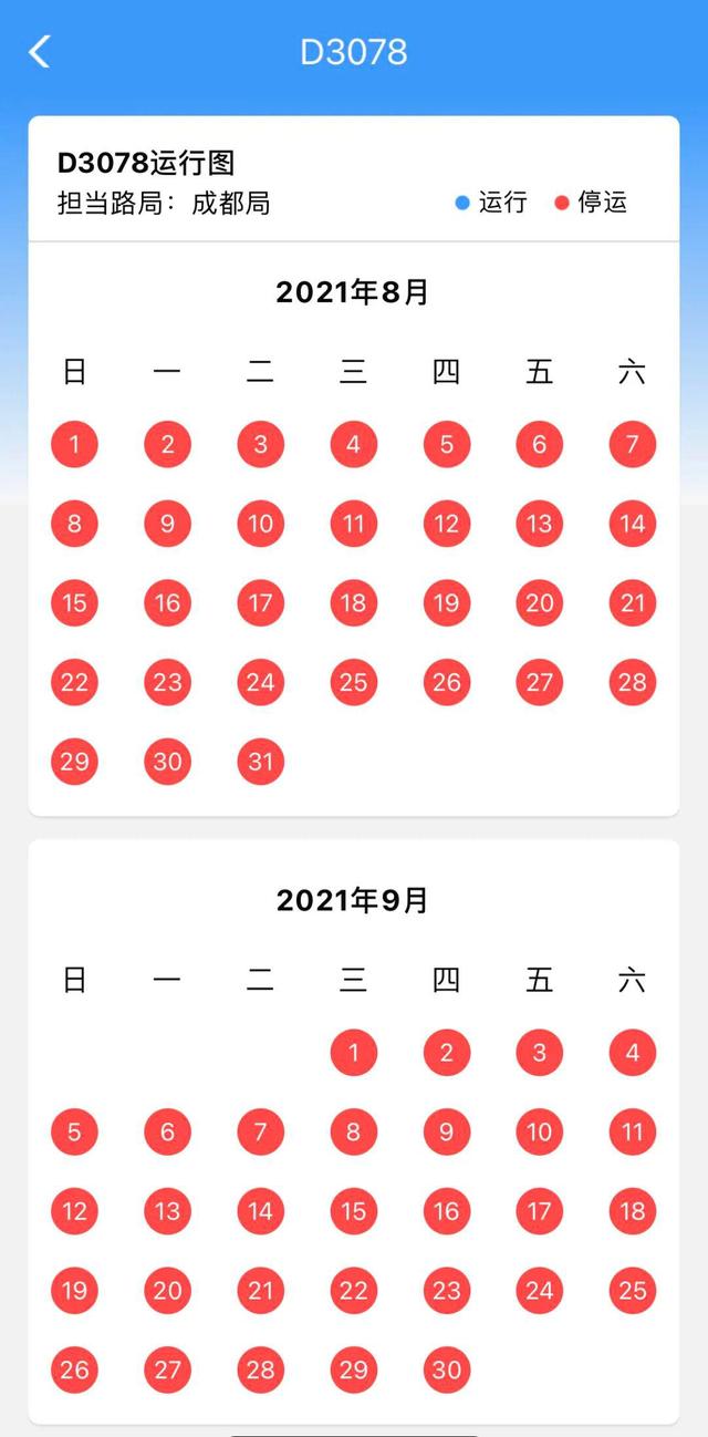 据12306APP显示,D3078次列车为由成都东开往南京南,已自8月1日起停运。