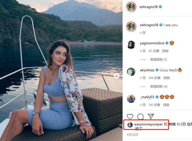 Zehra Gunes出生于1999年,身高1.97米,是土耳其女排的高颜值球员,堪称土女排的队花。同时Zehra Gunes也是一名社媒达人,经常会在个人社交媒体上晒出美照。我估计是杜兰特关注美女排的比赛时,发现了这位高颜值的球员,从此开始了社媒的频繁互动。
