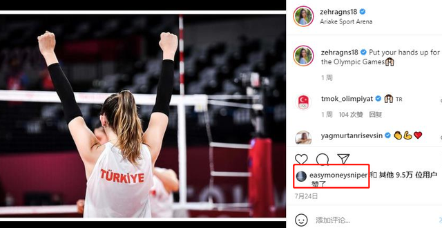 作为NBA最出色的键盘手,杜兰特在参加东京奥运期间也没有闲着。最近就有关注杜兰特社媒的媒体和球迷发现,杜兰特在奥运会期间依然在疯狂的给美女点赞。这位高颜值的美女就是土耳其女排的球员Zehra Gunes。朱婷在土耳其女排联赛打球的时候,曾经和她做过队友。