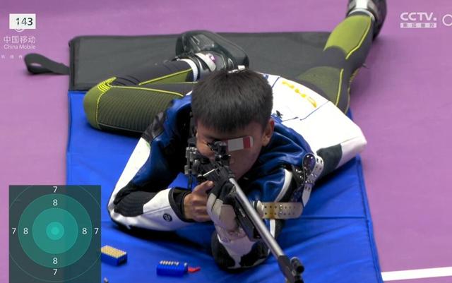 根据规则,每位选手将先打3组每组各5发跪射,再打3组各5发卧射,然后打2组各5发立射。40发比赛打完,最后两名将被淘汰,名次分别为第七名和第八名。此后,从41发开始,每一发立射将末位淘汰一人,直至在第45发打完后决出冠亚军。因此,决赛还很漫长。