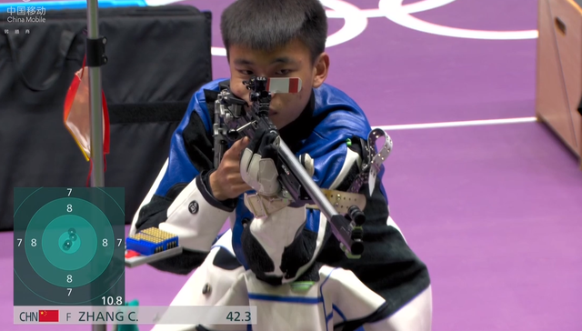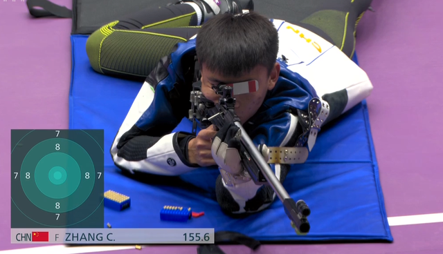 决赛规则如下:每一名选手先打三组,每组5发,跪射+卧射,然后立射打2组10发,40枪打完后,最后两名被淘汰,从第41发开始,每一发淘汰一人,打到第45枪,决出冠军!可以说规则非常非常残酷,当然,越是这样的比赛,偶然性越大,对于00后的张常鸿来说,有机会冲击这枚金牌!