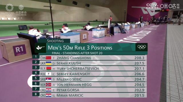 三轮卧姿结束,张常鸿保持0.8环的优势