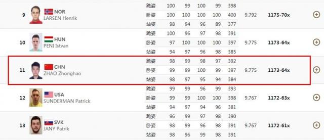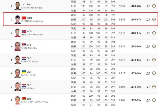 直播吧8月2日讯 男子50米步枪三姿资格赛,中国选手张常鸿以第二的成绩晋级决赛,另一名中国选手赵中豪排名第11,无缘决赛。