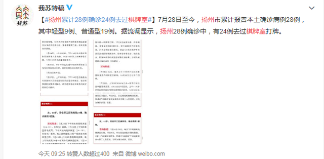 据此前流调显示,扬州28例确诊中,有24例去过棋牌室打牌。