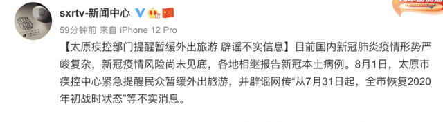 山西太原疾控部门则提醒:近期暂缓出行旅游,尚未外出市民不安排前往旅游热点地区旅游,不参加聚集活动,家庭成员聚会尽量不超过10人;正在外出旅游市民要及时了解旅游所在地疫情形势,提前和返回所在社区沟通,按照社区疫情防控要求,在做好个人防护的基础上做好返并安排。