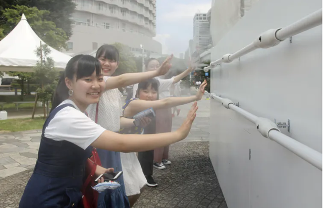 包括这里在内的东京各处,潮风公园的沙滩排球场地都安装了喷雾站。