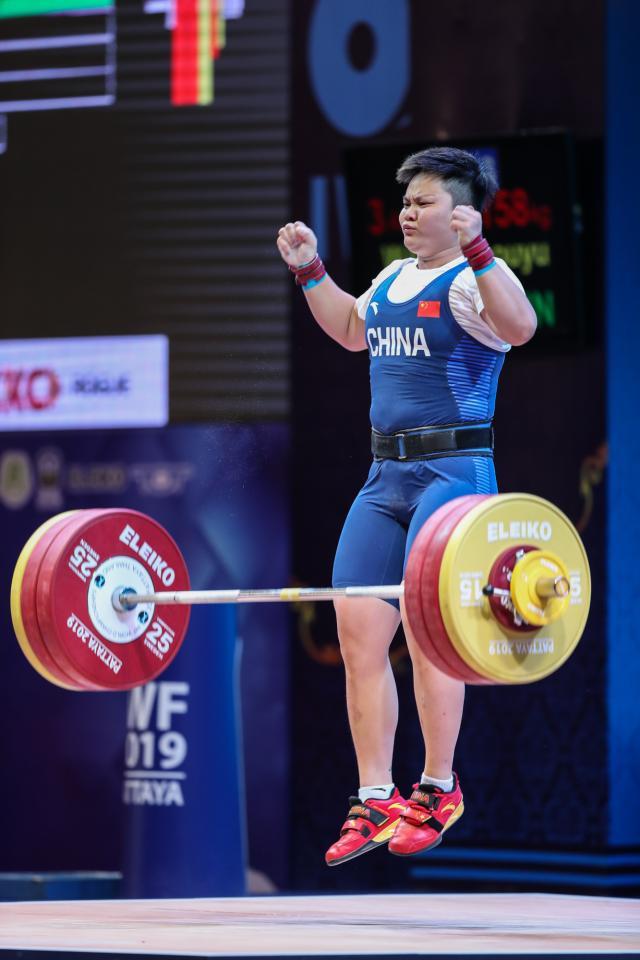 汪周雨出场第一把就干净利落地举起了145公斤,离她的最好成绩还有15公斤的距离。汪周雨第二把挺举150公斤成功,最 终,中国的汪周雨夺得这枚金牌。