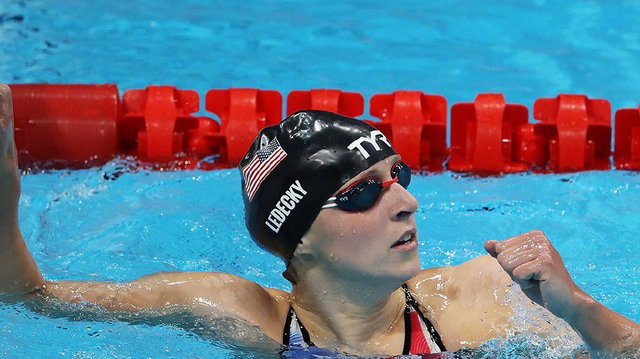 美国游泳女运动员莱德基,她夺得了女子800米自由泳的金牌,这是莱德基在本届奥运会上夺得的第2枚金牌,此前,莱德基曾夺得女子1500米自由泳金牌。