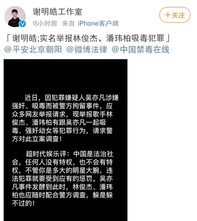 但是与都美竹相比,谢明皓又有些许不同,首先,都美竹曾与吴亦凡交往过,本身是受害者之一,她的话自然可信度高一些,但是谢明皓不是,而且此前他与林俊杰和潘玮柏基本上就没任何关联,因此他的爆料不具备说服力。