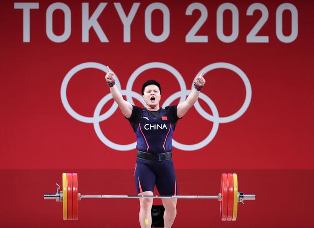 当日,在东京奥运会举重项目女子87公斤级比赛中,中国选手汪周雨夺得冠军。