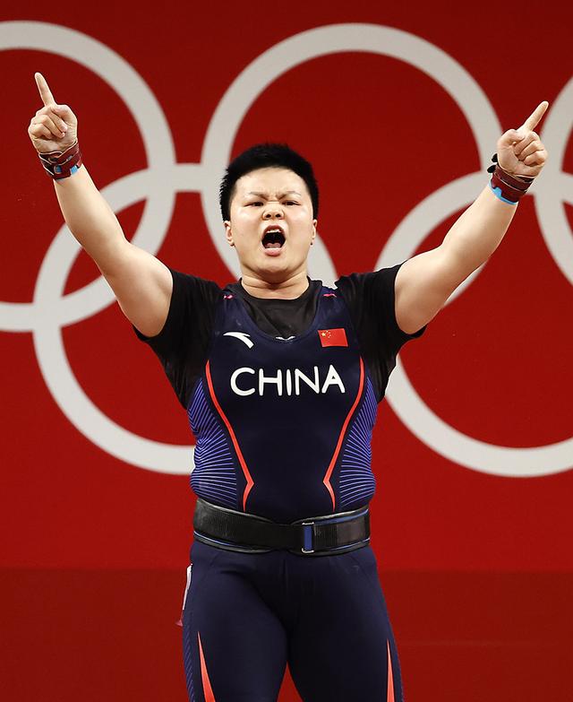 当地时间2021年8月2日,日本东京,2020东京奥运会举重女子87公斤级决赛。汪周雨夺得金牌。