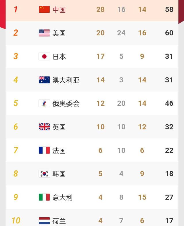 【摘要】 2021年8月2日,东京奥运会进入到第10天的争夺,就在一个小时内,中国队连续拿到4金1银,总成绩超过上届里约奥运会,目前以28金16银14铜稳居