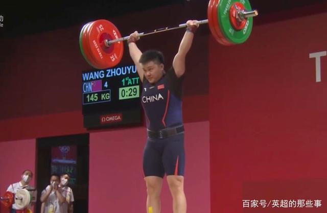 挺举比赛,汪周雨的开把要了145公斤,所有选手中最高!在第一把试举中,汪周雨轻松举起,基本上已经锁定了冠军!第二把,汪周雨要了150公斤,再次举起,将领先优势扩大为10公斤,在对手未完成比赛的情况下,提前锁定了金牌!第三把,汪周雨要了160公斤,未能举起,不过已经不影响结果!