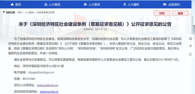 为了加强深圳经济特区社会建设,提高保障和改善民生水平,加强和创新社会治理,深圳市人大常委会社会建设工委组织起草了《深圳经济特区社会建设条例(草案征求意见稿)》,并在市人大常委会网站公开征求社会意见。