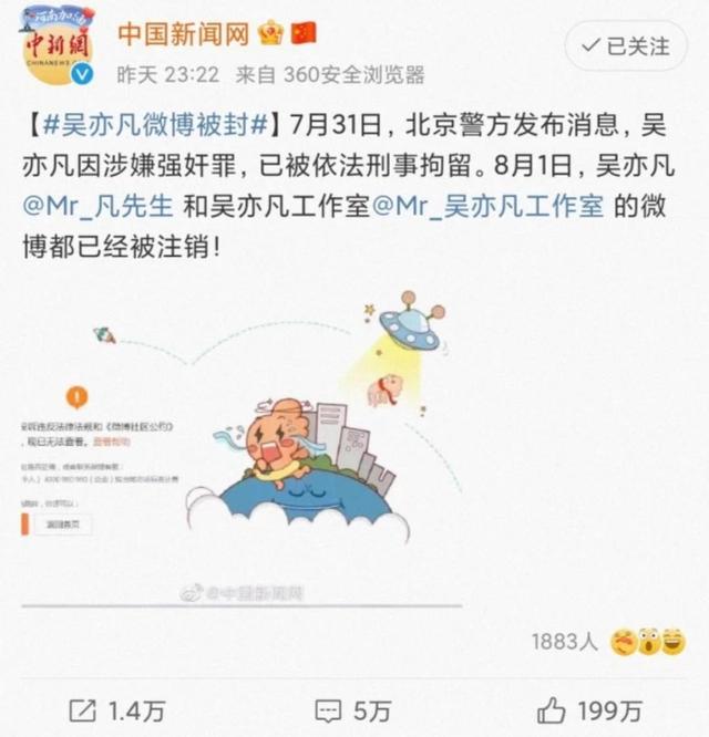 全平台封杀吴亦凡,这个封杀力度可谓是内地娱乐圈第一人了!而那些曾发文力挺过吴亦凡的公众人物账号也都连带着被封禁了,其中包括同为演员的马苏以及作家六六等人。