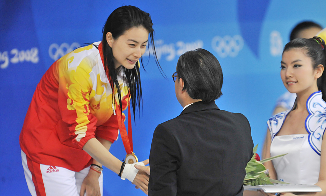 2004年,雅典,郭晶晶三度出征奥运会,一举斩获女子单人3米板与女子双人3米板两枚金牌,她得偿夙愿,也成为了中国跳水的领军人物。