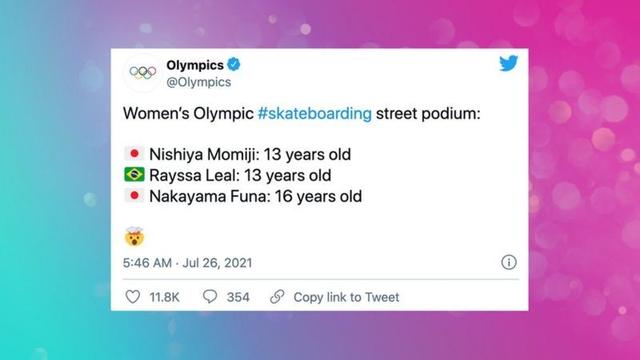 帮助日本赢得历史上第一枚奥运会女子街式滑板金牌的日本选手西矢椛年仅13岁,同样是13岁的巴西选手蕾莎·利尔(Rayssa Leal)夺得这个项目的银牌,16岁的日本选手中山枫奈赢得铜牌。女子街式滑板项目的领奖台是奥运历史上平均年龄最轻的个人项目,选手平均年龄只有14岁零191天。