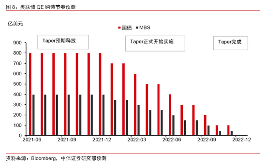 美联储已经在为Taper做准备,可能在8-9月释放Taper信号,年底或明年初执行。从7月美联储的会议内容来看,美联储虽然没有释放Taper的信号,但在声明中给出了关于Taper触发条件的新指引。同时鲍威尔也表示已在讨论关于Taper的具体条款(时点、节奏、构成等),因此美联储已经在为下一步Taper信号的释放做准备。往后看,我们依然维持此前的判断,未来美联储的紧缩路径将可能是“短期关注就业、中期关注通胀”来决定。我们预计未来几个月美国就业市场在财政退坡后有可能会超预期改善,美联储可能会基于就业市场的变化在8-9月释放Taper信号,年底或明年初执行,预计6-12个月完成缩减后,通过到期债券再投资维持一段时间资产负债表规模不变,而后到明年中期再观察通胀持续性的问题,2023年初再考虑加息事宜。对于市场而言,伴随着美联储货币正常化预期,三季度末需要警惕实际利率上行和美元相对走强。
