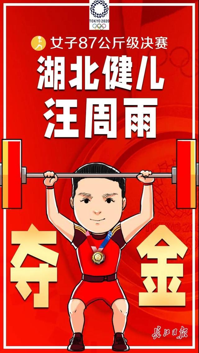 8月2日下午在东京奥运会女子举重87公斤级决赛中湖北宜都姑娘汪周雨以270公斤总成绩夺得金牌