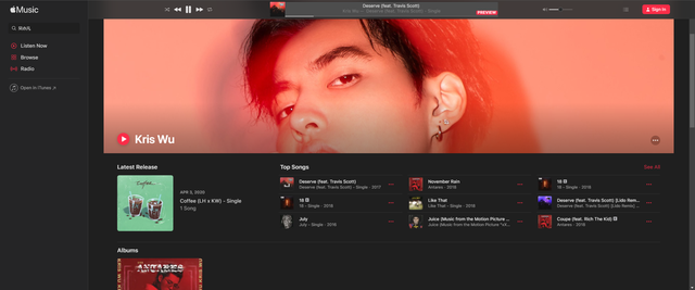 现在,苹果 Apple Music 中国区也下架了吴亦凡的歌曲,歌手、专辑等也无法搜到,而海外版没有下架。